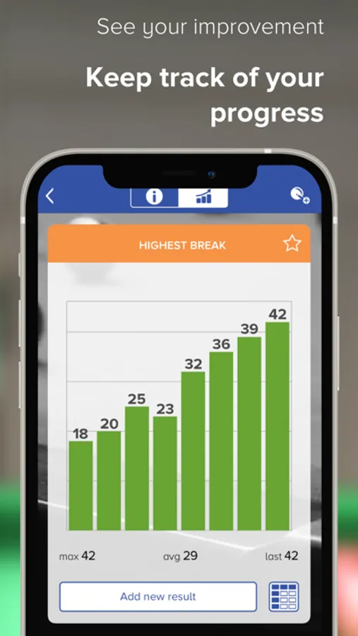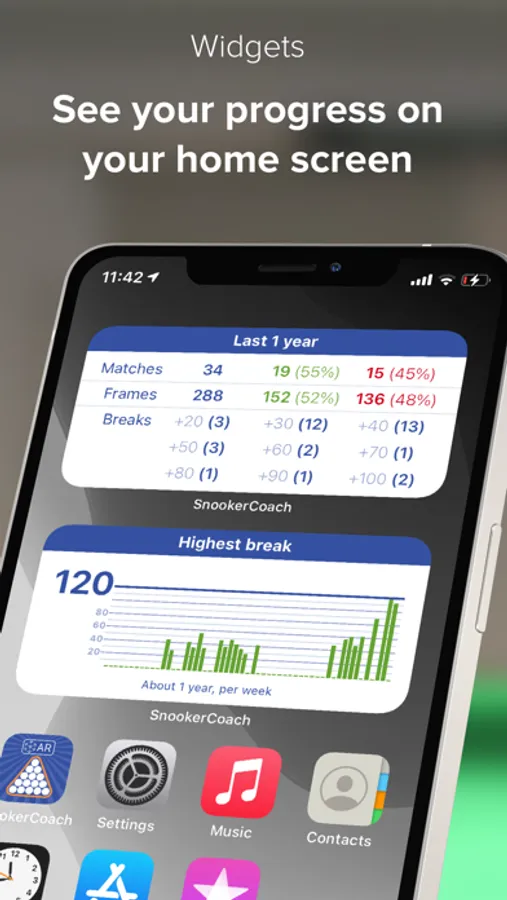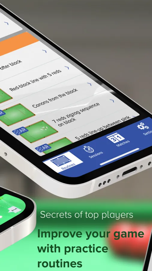 #1 snooker coaching app! Keeps track of your frame scores, breaks, state of mind... your complete snooker log diary (matches, frames, breaks...). Helps you to improve your snooker game with an extensive list of practice routines and sessions. Using Augmented Reality (AR), practice routines are projected in real-time on your snooker table. You can also create your own custom practice routines using the built-in table editor and project them on your snooker table using augmented reality (AR)! Enter your practice results in the app and see your improvement, day-by-day. Contains a lot of widgets that you can put on your home screen to track your matches, frames, breaks, and much more.