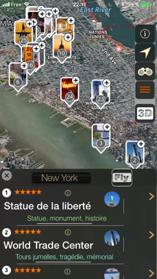 Des survols automatiques, vous permettent de découvrir judicieusement chaque lieu d'intérêt.
