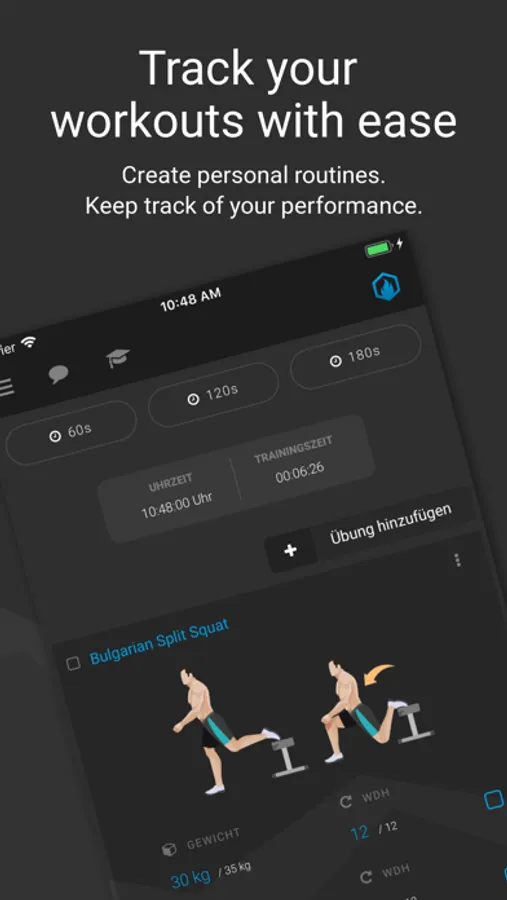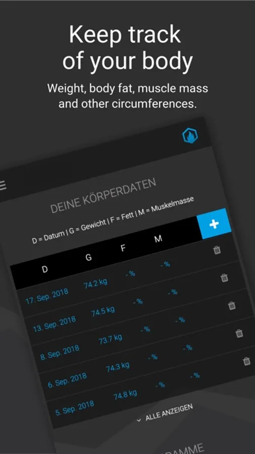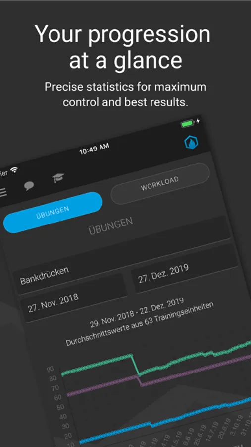 Create custom training routines, add your own exercises or exercises from our catalog and start your workout. GAINSFIRE logs your performance just like a pen and paper workout diary.
