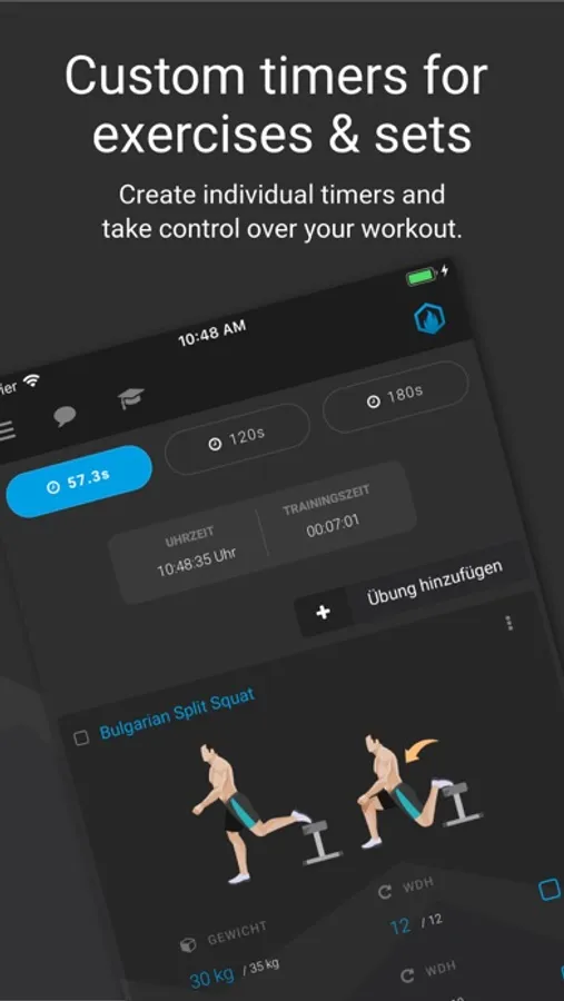 • Define individual rest times for sets and exercises with customizable timers