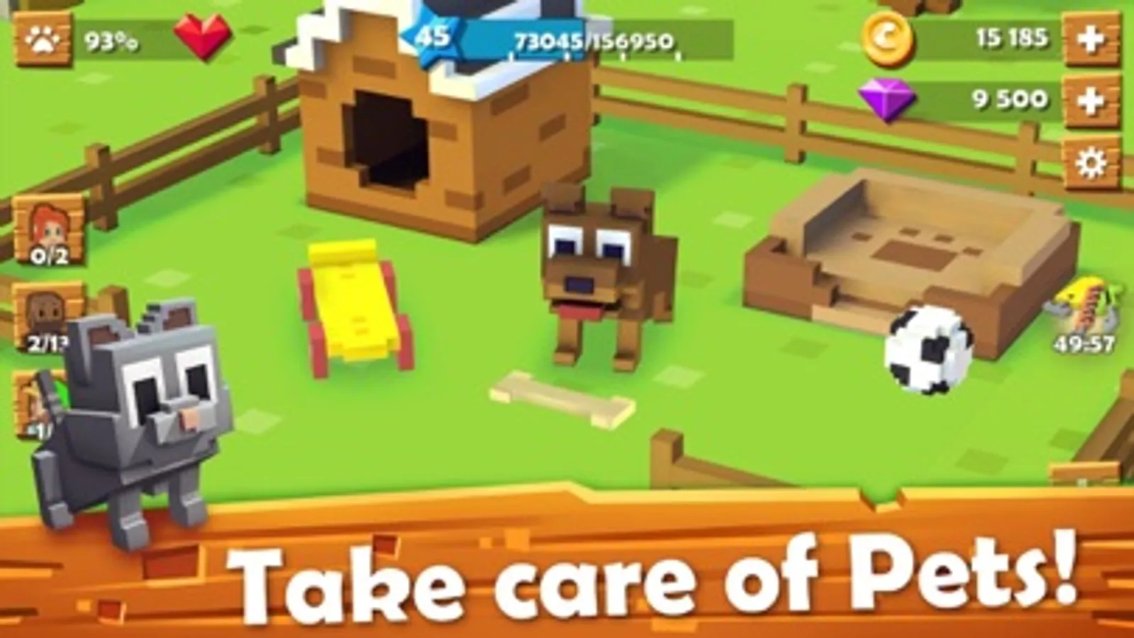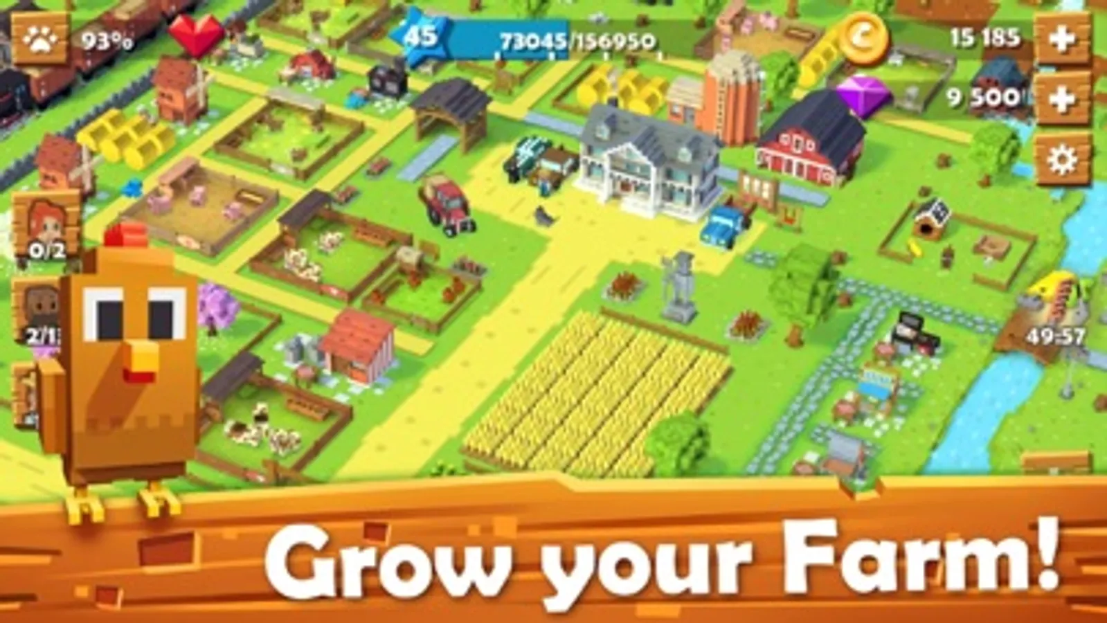 Enter the charming world of Blocky Farm where you can take care of cute pets and animals, style them with cool gadgets and get love in return. Manage your lands, deliver goods to the town with the tractor and create friendship with citizens. Start your farm life today!
