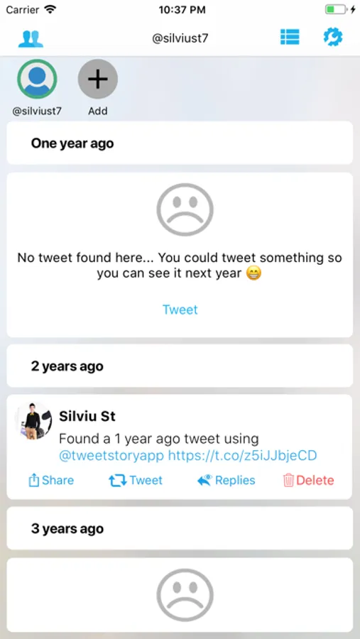 We should never forget our past! TweetStory focuses on this aspect by offering you the possibility to see your Twitter account on this day but past year. Find any tweet whether is a status, a GIF, a video or just quoted from your timeline at that time.