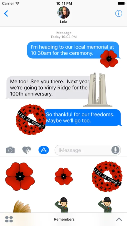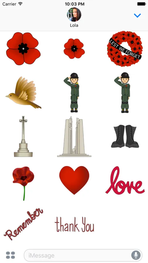 Thanks for using Sticker Pop Remembers! If you think this sticker pack is worthy, would you mind taking a moment to write a nice review? App Store reviews help more people find the app and have a better chance to use these free stickers to spread the word and celebrate Remembrance Day.