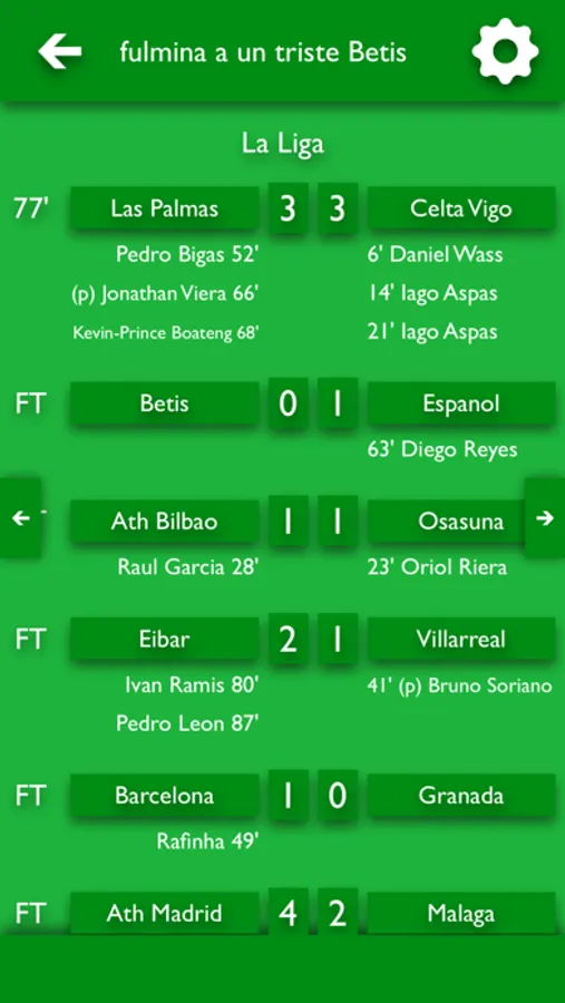 Manténgase informado el día del partido con las actualizaciones en directo, de modo que, ¡no se pierda un gol!