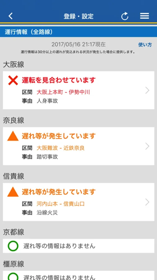 「近鉄アプリ」は、近鉄電車の列車の運行に関する情報を中心に、鉄道のご利用にあたっての情報を提供する近畿日本鉄道の無料公式アプリです。
