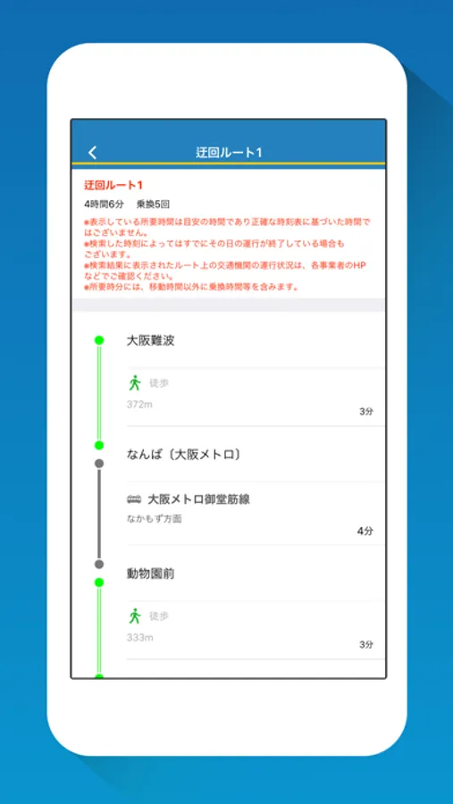 お客様がご乗車されたい区間において、運転見合わせが生じた際、その区間を迂回して目的地へ到達できるルート(他社鉄道路線を含む)を検索できます。迂回ルートがある場合は、標準的な所要時間や乗換回数と共にお知らせします。また、振替輸送を行っている場合は、当社路線から振替対象路線の最寄り駅までの距離や所要時間を表記した路線図も併せて表示します。