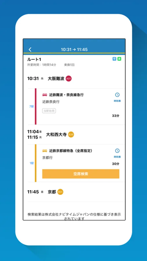 ※アーバンライナーやしまかぜ等、一部の特急列車については、ご乗車の1ヵ月前から検索できます。