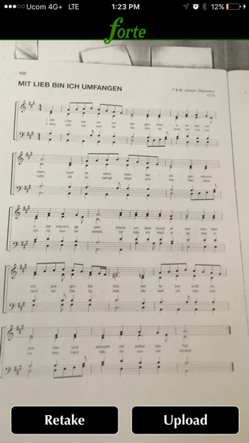 It turns your mobile device into a sheet music scanner! Simply take a photo of your score and it will be automatically transfered to the desktop version of FORTE Scan. There you can start the recognition process and export it to MusicXML file or directly into the music notation program FORTE.