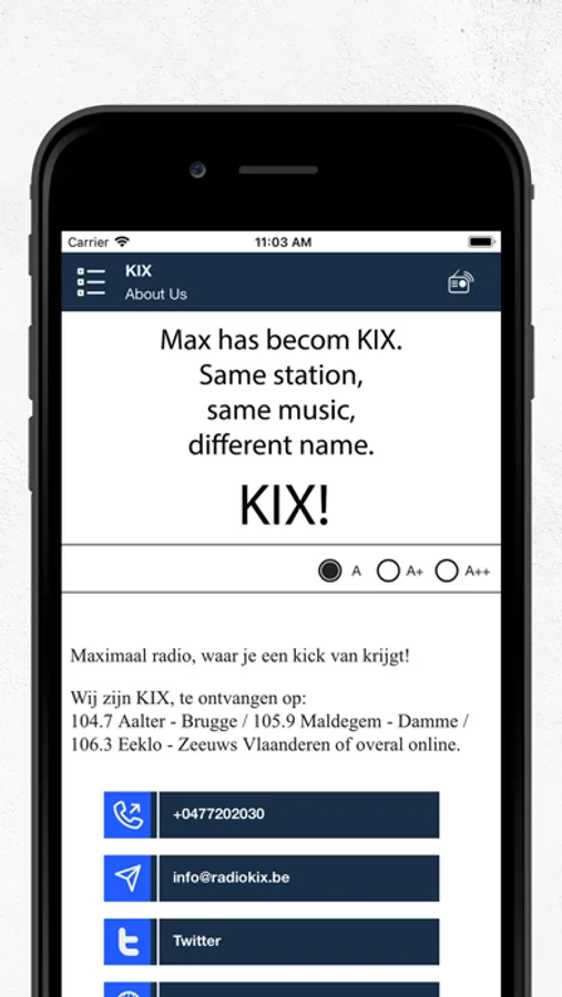 Radio KIX Belgium broadcasts pop-music hits non stop, 24/7