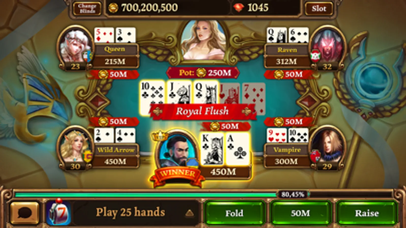 We took the Classic Online Poker and added a Fantasy Adventure twist to it. Hone your Holdem Gard Game skills by completing Quests, beating Levels and getting Big Rewards for every single one of them! It's a Las Vegas style Free Casino Poker like you've never seen before! Download Now and get your 60 Million Chips Welcome Bonus. See you in the Game, Poker Sharks!