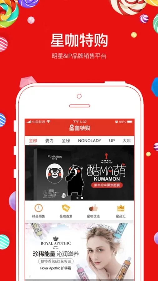 星咖特购平台致力于明星、艺术家、设计师品牌及产品孵化,时尚潮流文化品牌IP授权合作、影视娱乐IP衍生品开发。星咖特购平台首创 “MX2C”理念,打造 IP产品及明星品牌孵化商业模式,是市场定位精准、盈利模式清晰、销售渠道成熟,受市场需要,应运而生的互联网思维IP产品及明星品牌销售平台。