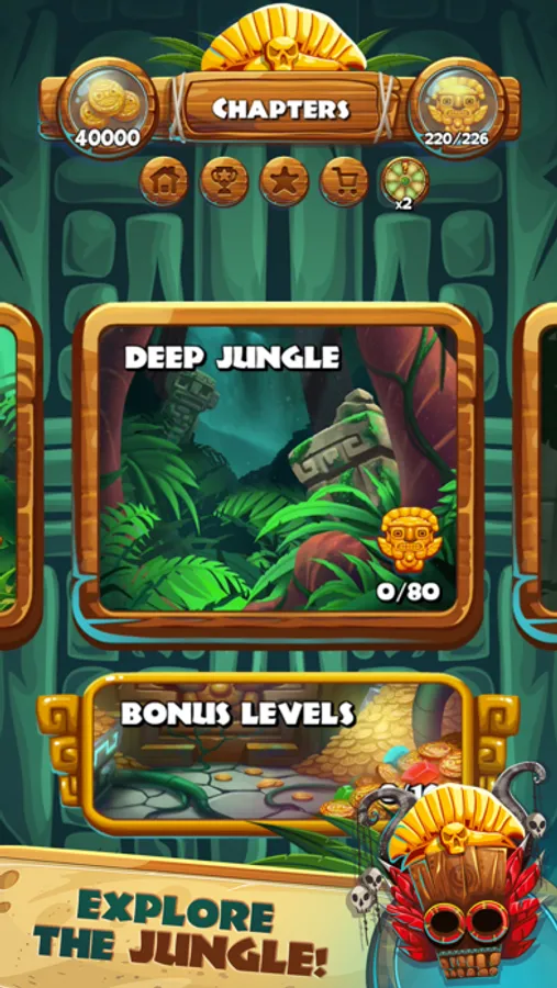 Explore the jungle, uncover its secrets and collect valuable treasures as you play through fun, challenging chapters and dozens of levels. Good luck!