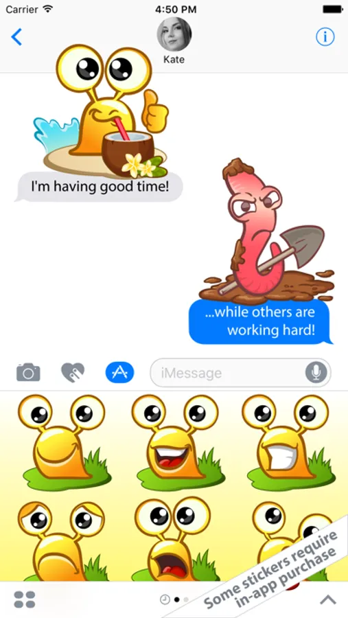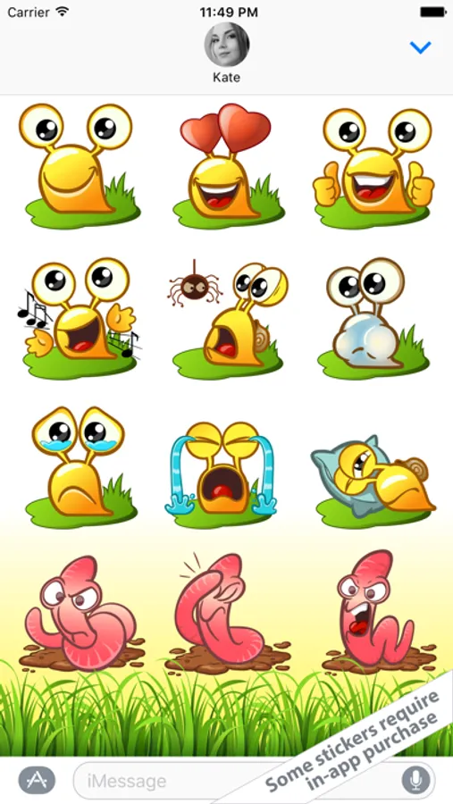 Snail & Worm are a fast and easy way to respond creatively. Using them, you can pick the right emotion and express feelings to surprise your friend!