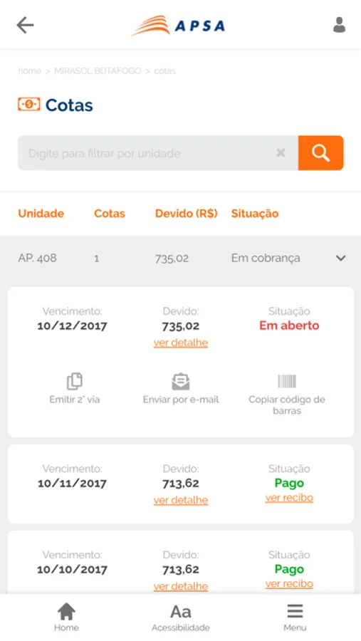 Cotas (2ª Via do Boleto) - Envie o link da cota por e-mail ou copie a linha digitável para efetuar o pagamento no aplicativo do seu banco.