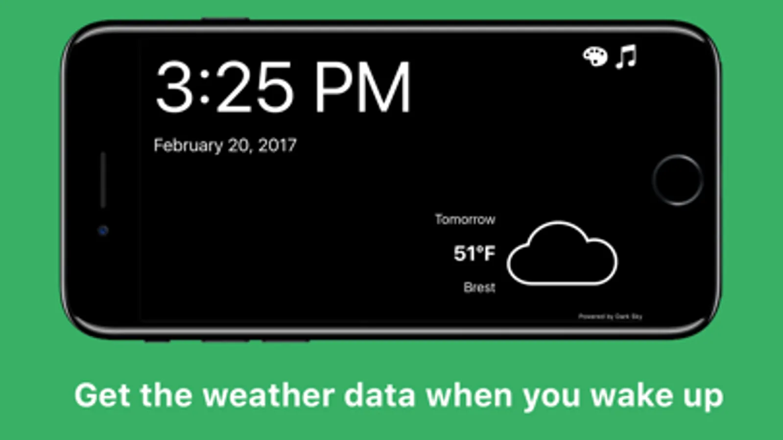 The app UI is designed to limit the effect of the screen’s brightness and attenuate discomfort due to light. Color animation allows you to be waked-up softly with a smooth transition.
