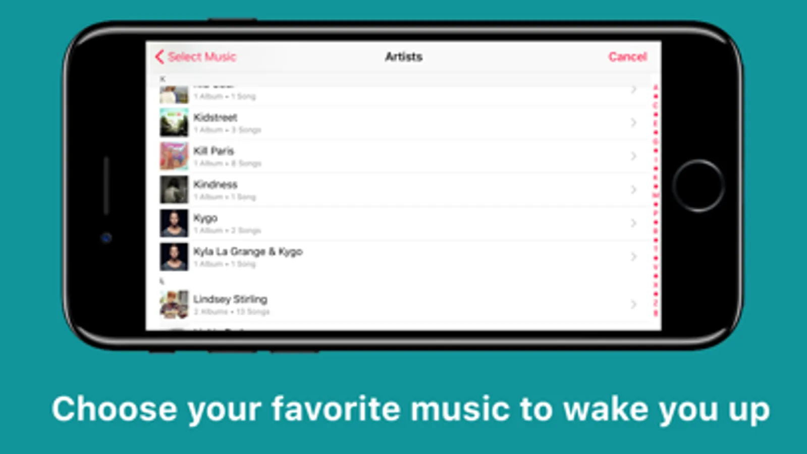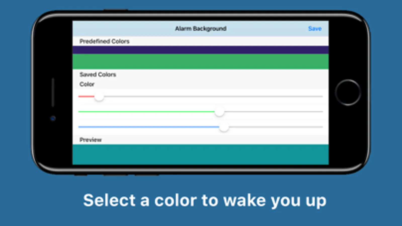 The app also acts as an alarm, you can choose your favorite song from your music library but also select a color to animate the background when you wake up. You can choose one of the predefined colors or you can create your own.