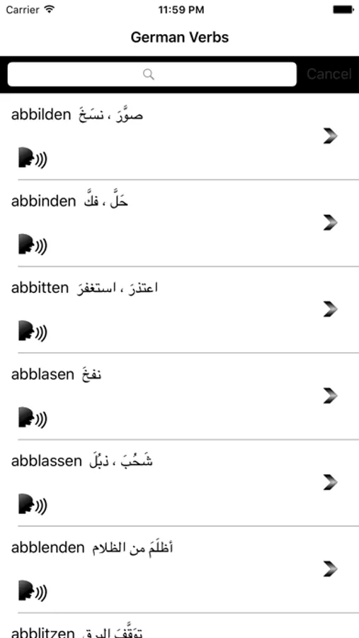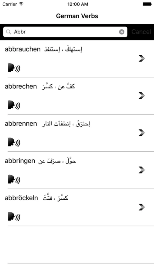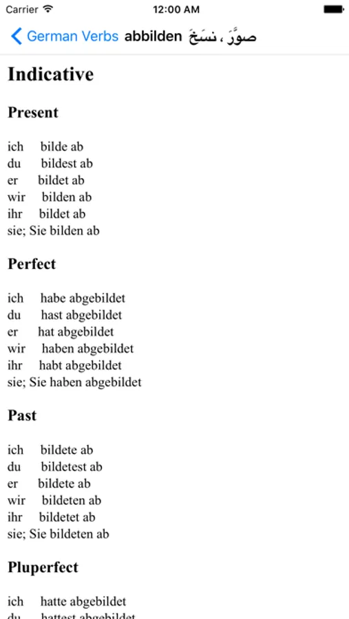 تصفح الأفعال الالمانية وتصريفاتها مع الترجمة لاكثر من 4000 فعل بدون انترنت