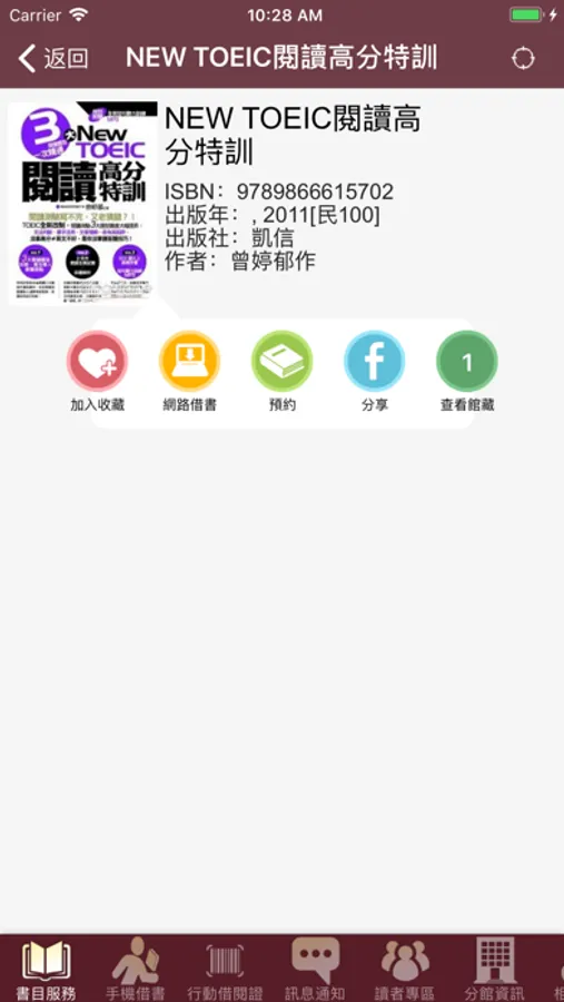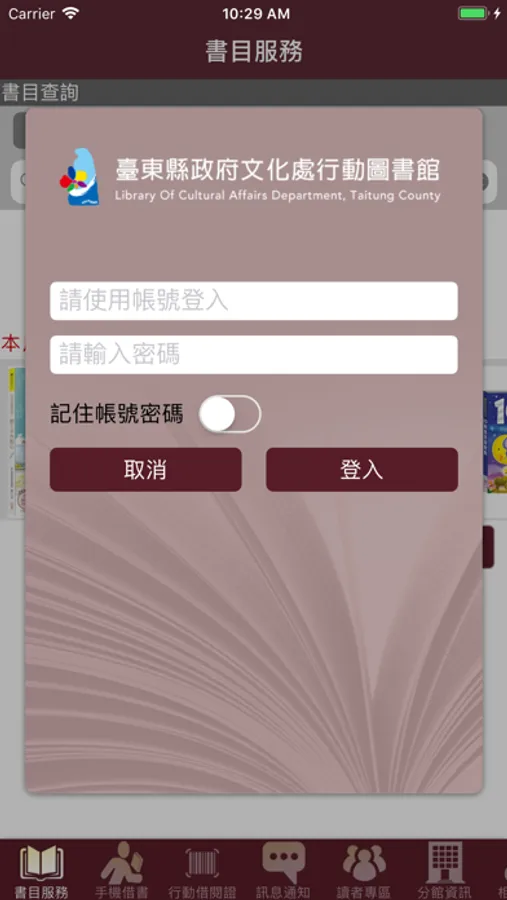 「臺東縣政府文化處行動圖書館」為縣民提供便利的圖書知識管道,配合LBA定位服務功能,除可查詢臺東縣內各鄉鎮公共圖書館館藏的圖書資源外,亦可e化出與您距離最近的書籍在哪個館內,讓您隨時掌握臺東提供免費借閱的圖書資源動向。此外,讀者更可透過此軟體進行個人化服務,如接收預約到館通知、預約服務、通閱服務等。眾多令人驚豔的功能項目等您親自體驗。