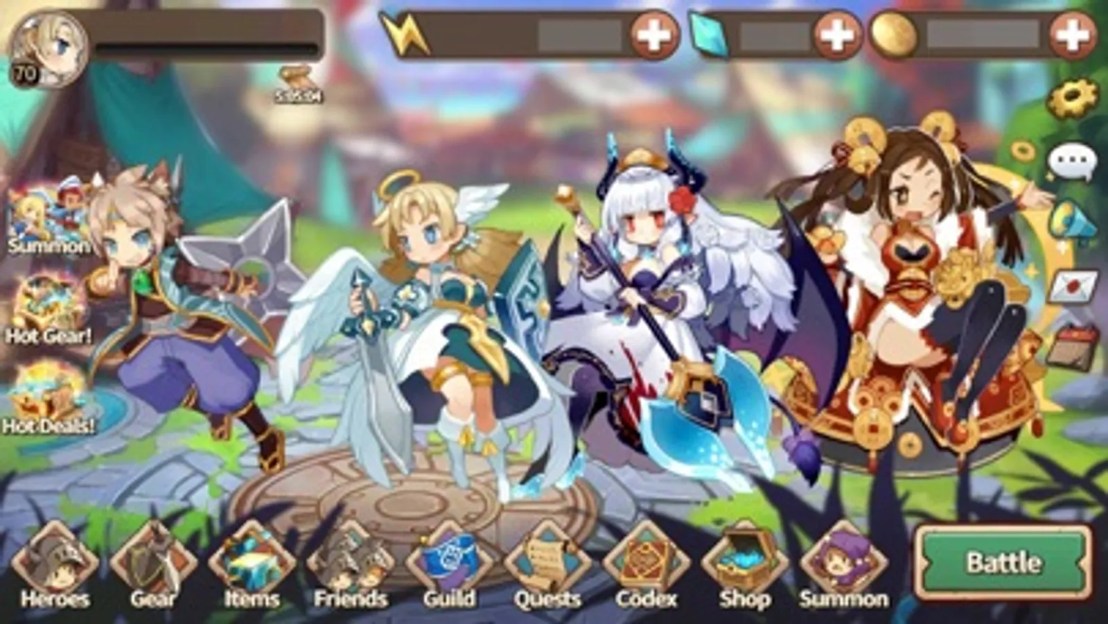 Let your heroes adventure for you while offline! They will gain experience and loot while you are away.