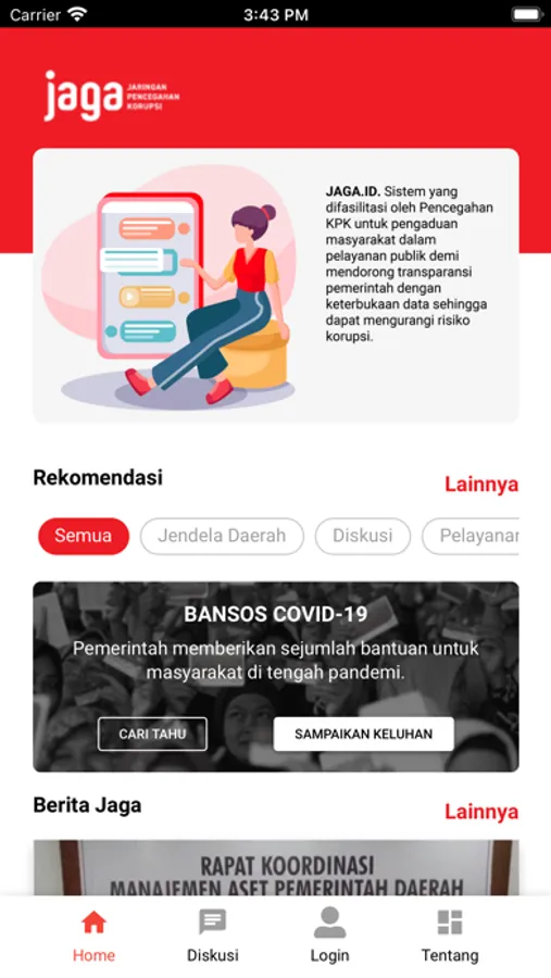 Jaga adalah aplikasi pencegahan korupsi yang mendorong transparansi penyelenggaraan pelayanan publik dan pengelolaan aset negara.