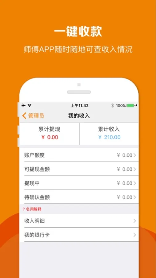 【收支明细】微信、支付宝、扫码收款或现金收款多渠道更便利,智能交款流程和私单说拜拜。收入、支出,让每个家电师傅随时随地轻松查看记录。