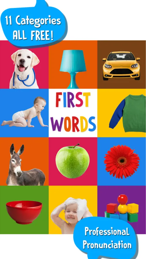 - There are 11 baby flashcard categories and more than 120 words(Pets, Sleeping Time, Vehicles, What I Do?, Clothes, Farm Animals, Food, At Park, Eating Time, Bath Time and Toys).