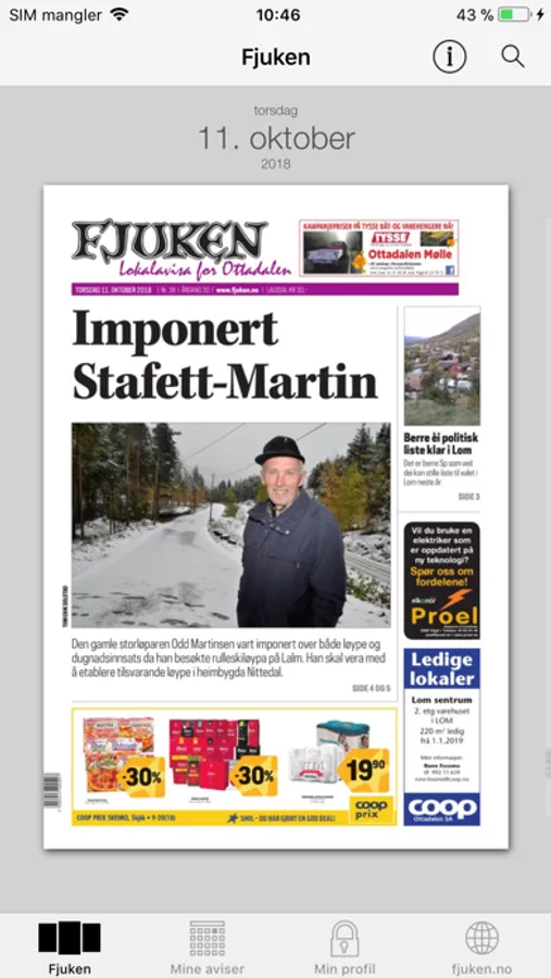 Med Fjuken sin app kan du lese eAvisa vår. Du kan nytte eit allereie eksisterande abonnement. Last ned i eit format som er tilpassa din iPhone, iPod Touch eller iPad.