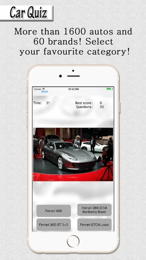 Car Quiz - it's great app that combines all the advantages of the game and learning! Indeed, in this application, we collected more than 1,600 cars and more than 60 world's most famous brands!