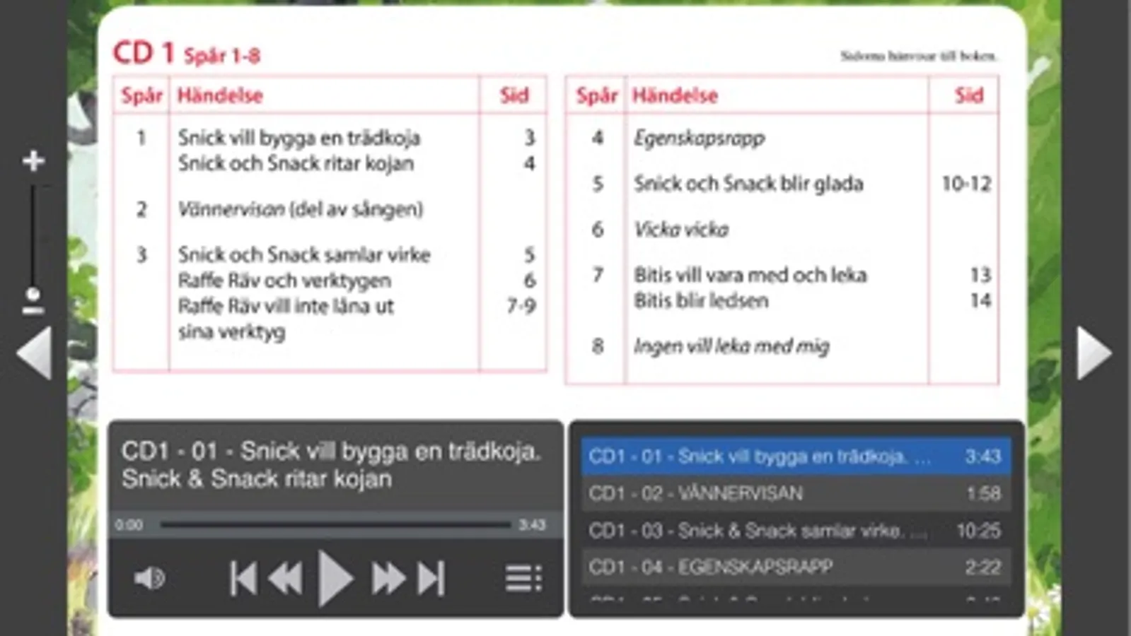 App, art nr 4663 med sagan om ”Snick och Snack Vännerna i Kungaskogen bygger en koja”. Appen innehåller hela berättelsen med berättare, ljud och dialoger till varje bild i boken (samma ljudinnehåll som CD1 och CD2). I stället för att spela sångerna från en CD spelare kan man nu spela direkt från mobil eller surfpatta. Denna App är ett komplement till Access Kungaskogen Kojan.