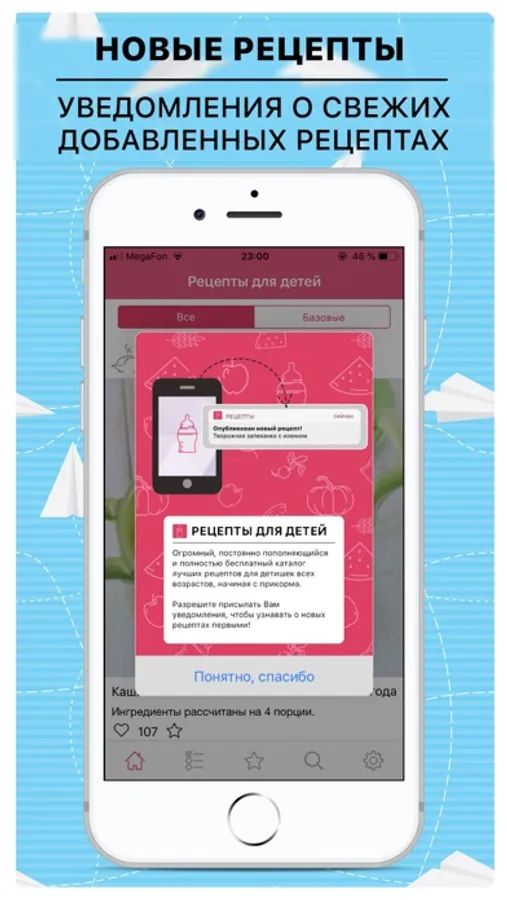 Теперь не нужно перерывать весь интернет в поисках что бы приготовить своему малышу: просто запустите это приложение, выберите возраст ребенка, желаемый тип блюда и начните готовку! Есть даже отдельный раздел с блюдами для прикорма самых юных малышек и аллергиков!