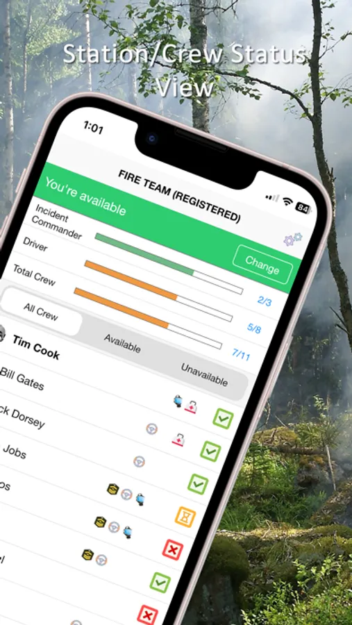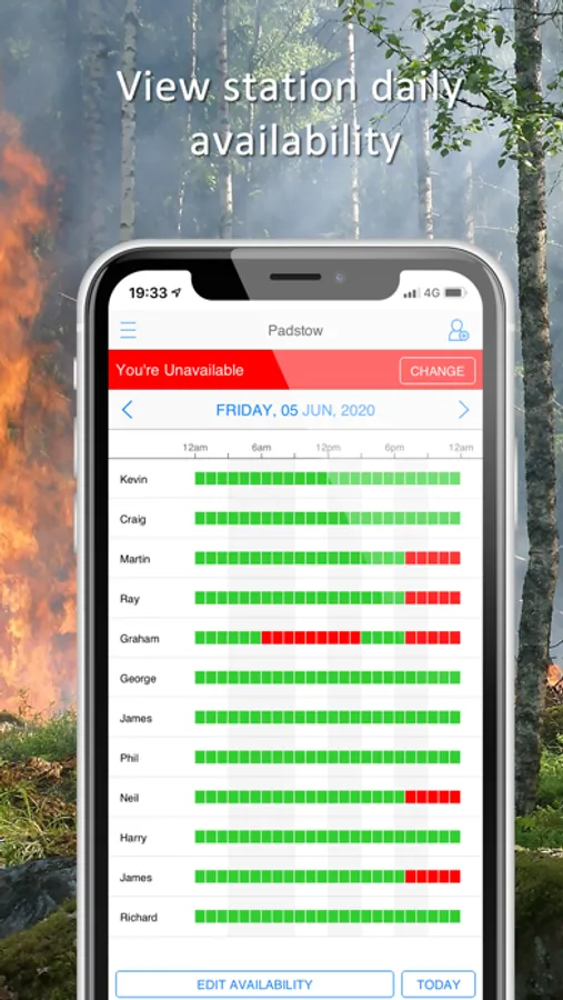 The availability is instantly updated across all other team members phones so it's easy to see at any time who is available should the team have a call-out.