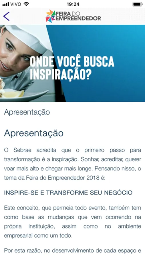 O Sebrae acredita que o primeiro passo para transformação é a inspiração. Sonhar, acreditar, querer voar mais alto e chegar mais longe. Pensando nisso, o tema da Feira do Empreendedor 2018 é: