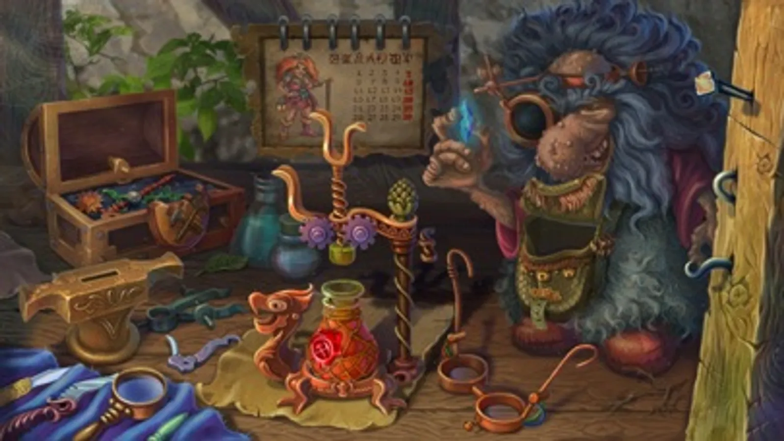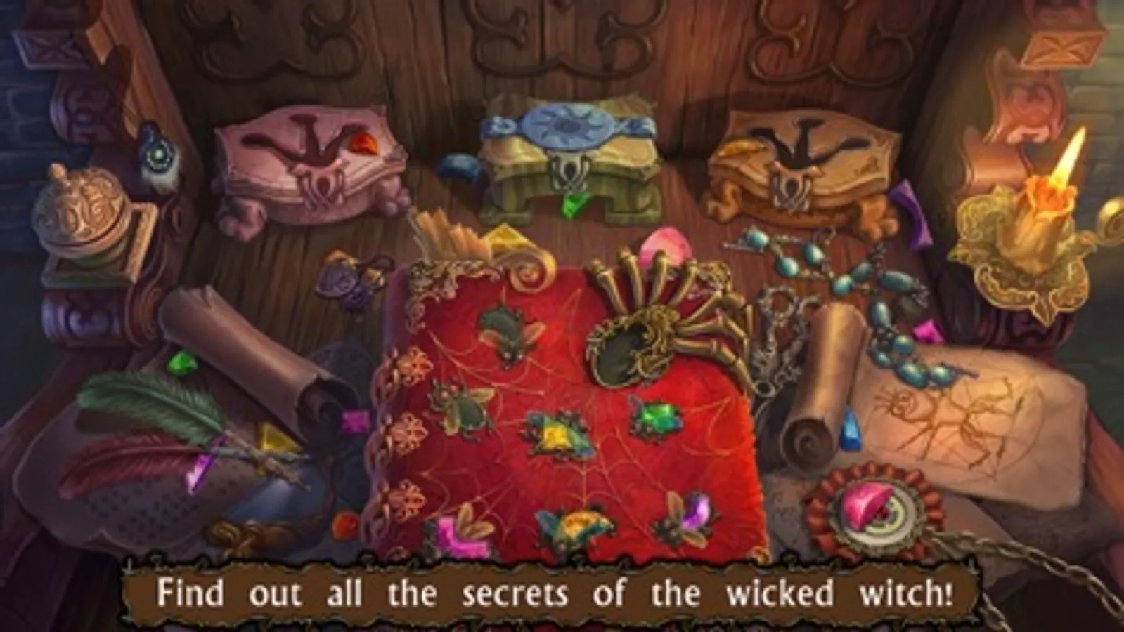 Though, amusing storyline and laughable videos are not the only killing features of this family-friendly adventure game. Witch’s Pranks: Frog’s Fortune is rather a point and click adventure than your ordinary finding games. It has almost no hidden object scenes, but rather find-and-apply puzzles. For instance, you should collect all jewels and place them a book cover. Or, otherwise, you should brew a potion by picking different ingredients from the shelves and mix them in the correct sequence. Please, mind that some locations are scrollable, which makes finding objects more challenging.