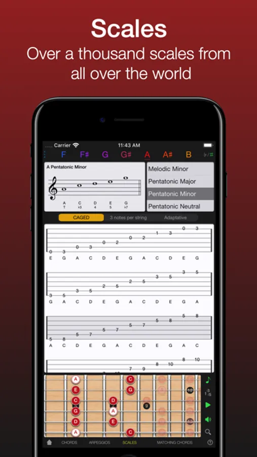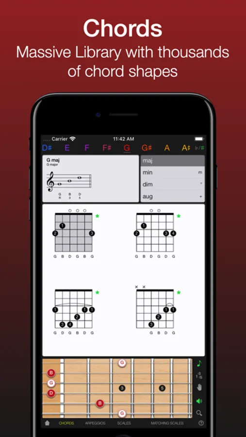 Guitar Gravitas is an inspirational tool for guitar players of all levels (beginner to pro) that offers the most comprehensive, advanced and interactive chord, arpeggio and scale library in the App Store.