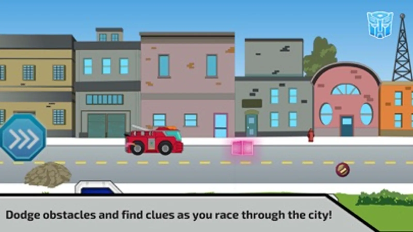 GRIFFIN ROCK RESCUE bands together with a few new teammates to track down a mysterious Mini-Con whose arrival in Griffin Rock sparks a thrilling race throughout the town. This interactive storybook app puts you side-by-side with CODY and the RESCUE BOTS team—even BUMBLEBEE is here to help—as they track down this devious visitor. This adventure sparks team spirit, burns a lot of rubber, and raises important questions for, BLURR, our newest RESCUE BOT recruit: What’s more important? The rescue mission or a ‘need for speed?’