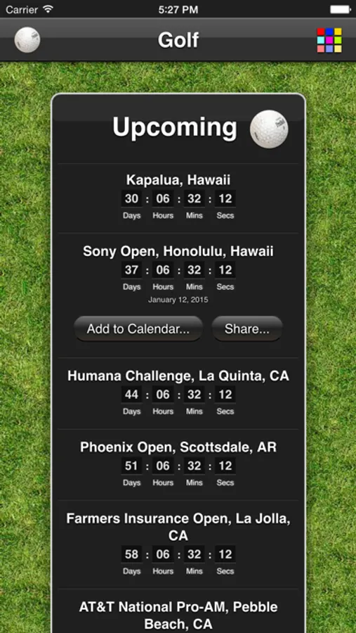 See the schedule and countdown to the current and upcoming PGA tour matches.