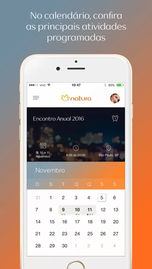 With it you can view the contents of the events in which you are participating, you can view the agenda of the day, receive our notifications and reminders of activities.