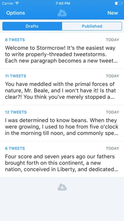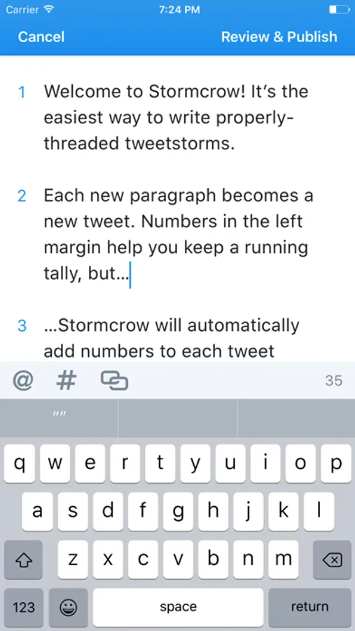 5) When you’re ready to publish, Stormcrow publishes each tweet back-to-back with just one tap.