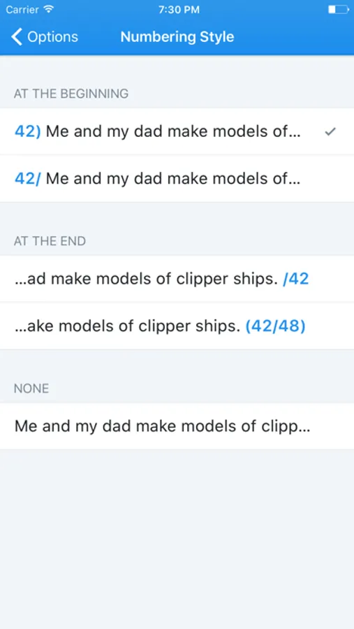 4) By default Stormcrow uses the leading number with parenthesis style but you can change this in the Options menu.