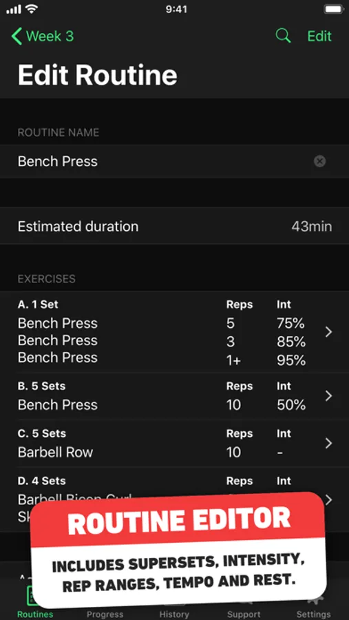 - “Been looking for workout tracker that gave me the ability to build a custom workout with specific features like sets based on percentages of a training max. This fit the bill perfectly and has a beautiful UI.”