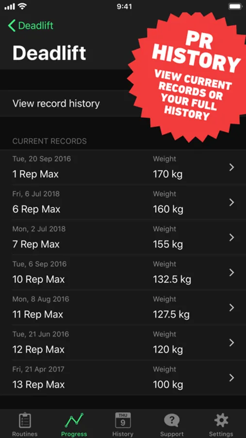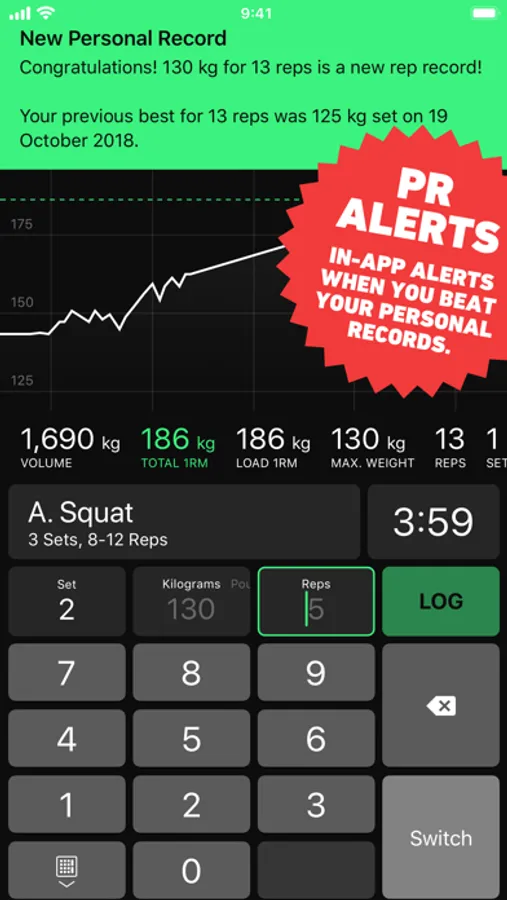 - Personal record notifications for rep records, estimated 1rm, volume & more