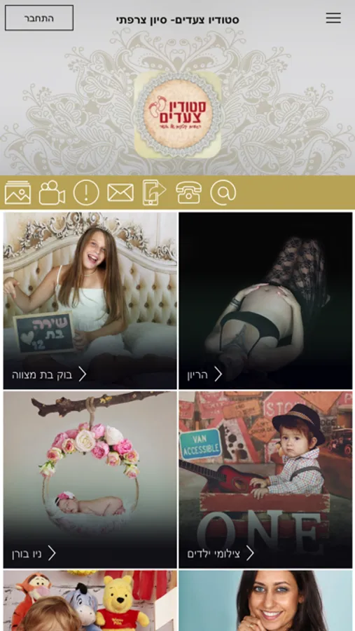 With סטודיו צעדים- סיון צרפתי branded mobile app you can delight them by uploading their photos to their personal gallery within minutes of their event, from anywhere, anytime.