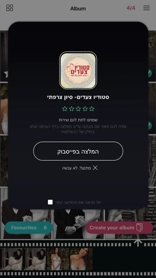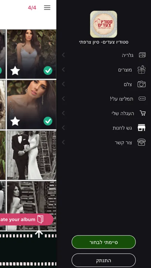 That’s where the fun really begins. With סטודיו צעדים- סיון צרפתי, your clients can view and proof their photos and albums from their mobile, tablet or desktop, whenever they like. Their privacy is protected with a personalized login, but if they decide to share their photos and albums with friends and family they can do so easily via social media. As a bonus for you, each time they do, your name and logo appears so there’s no doubt about who’s creative genius is behind the images! Comments left on images are automatically published on your Facebook page, generating a bank of positive feedback without you having to do a thing!