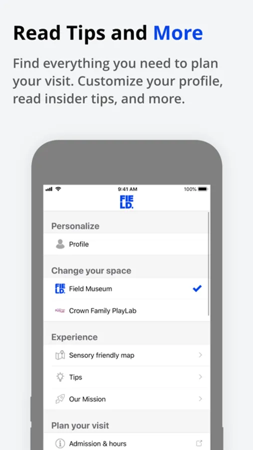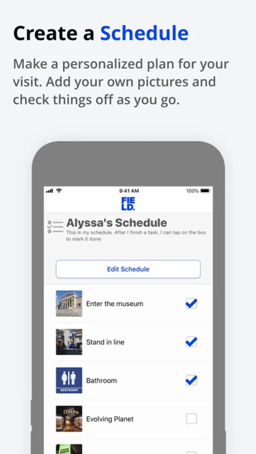 The Field for All app helps families and groups, including visitors with autism and disabilities, plan their visit with resources like exhibition previews, a customizable schedule, and a sensory-friendly map of the space.