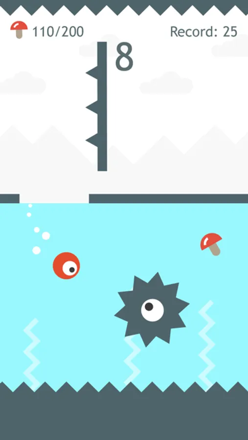 Hop above and under the water. Avoid dangerous monsters and eat mushrooms!