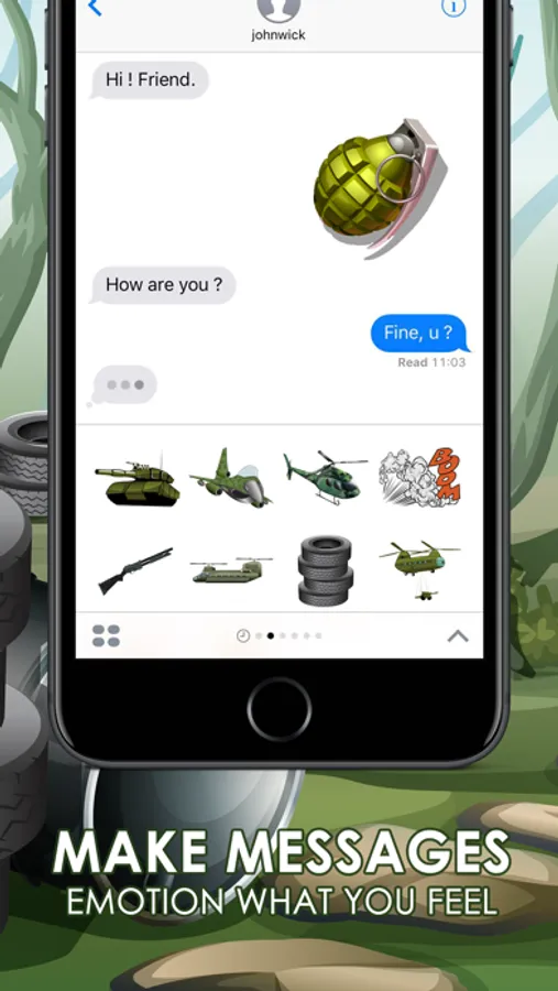 Purchase Military Emojis and get over 40+ Military emojis to text friends. Military Emojis is two emoji apps in one - a keyboard app for quick access when texting and a full app for sharing to social networks. Keep the excitement by adding digital stickers to all of your messages!
