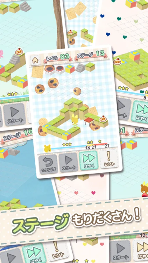 ブロックを落として道を作って、ルルロロをケーキにみちびこう!