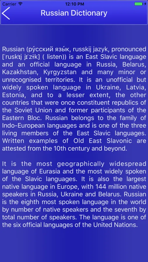 The best English to Russian Dictionary app allows you to browse dictionaries without a network connection, such as when you're on a plane, traveling abroad, out of cellular tower range or if you want to save battery!