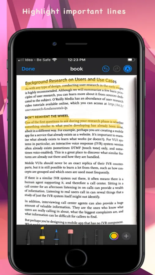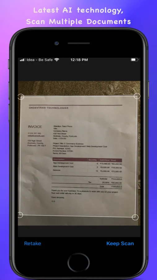 Use your phone camera to scan receipts, notes, invoices, whiteboard discussions, business cards, certificates, articles , books, etc. and covert them to pdf and send via email as attachment or share to cloud services