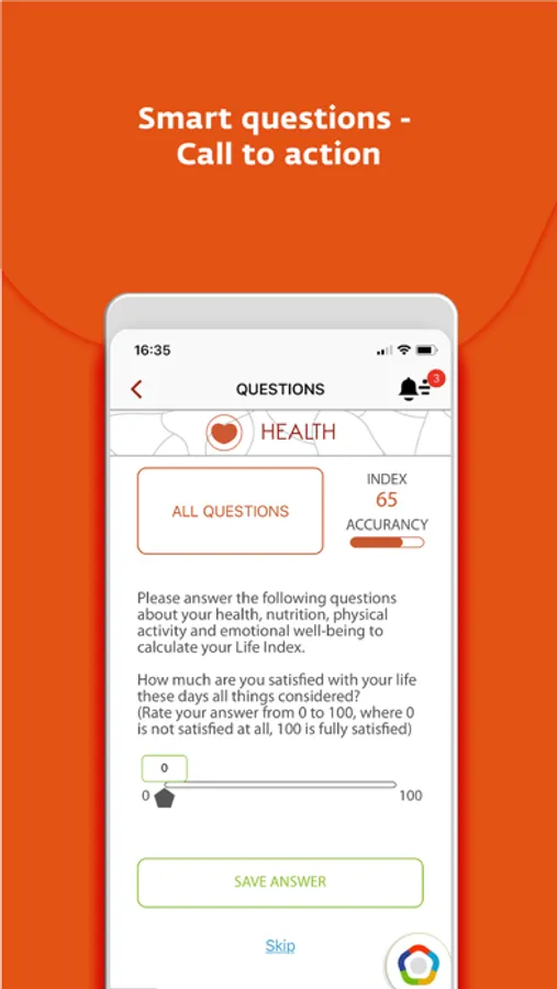 Your answers to our questions allow us to provide you with information on your current status of well-being, your strengths, the areas of risk and growth potential. Our questions form part of a broader well-being enhancement platform. Each question represents a certain parameter within the expert model, where your answers generate a hypothesis, and these hypotheses in turn trigger recommendations.
